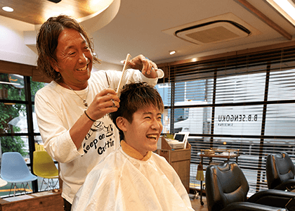 「『美容室』ではなく『理髪店』。このまちの人に愛され続ける“床屋さん”であることに誇りを持っています。お店のターゲットは、近所に住まわれている常連さんです。お客様のなかには、親父の代から馴染みにしていただく年配の方をはじめ、その息子さん、さらにはお孫さんと、三代で来られる家族もいます。椅子に座って一言“いつもどおりで”とすべてを任せていただける信頼関係は損なうことなく、同時に新しいスタイルやデザインを試してみたいときにも満足いただけるだけの技術を磨く。