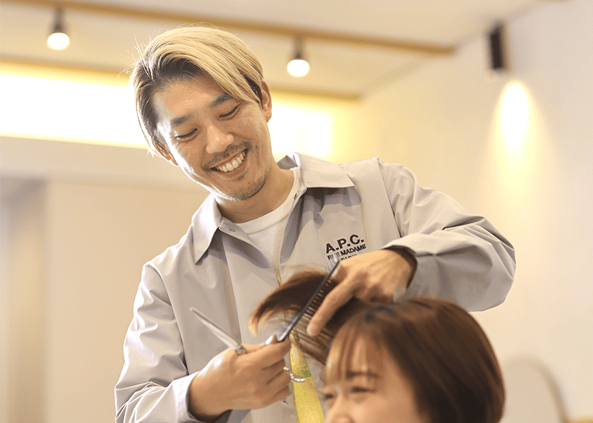 名古屋市守山区生まれの守山育ち。高校卒業後、名古屋中心部の美容専門学校の夜間課程に入学。昼はサロンで働きながら技術を身につけ、卒業時には美容師資格を取得。名古屋市内に7店を構える大手美容サロンに就職。キャリアを重ねたのち、全7店・総勢50人のスタッフの教育に当たる統括マネージャーに。40歳を迎える前年の39歳で、これまでとは違った働き方を求めて地元・守山にCapriceを構えて独立。